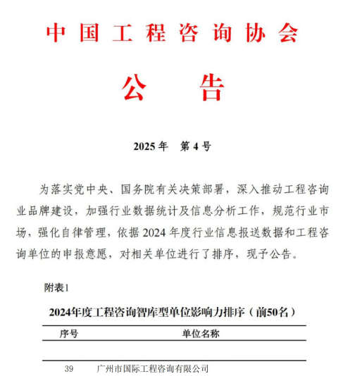 廣州國(guó)際咨詢公司榮獲《中國(guó)工程咨詢》雜志第二屆優(yōu)秀論文獎(jiǎng)